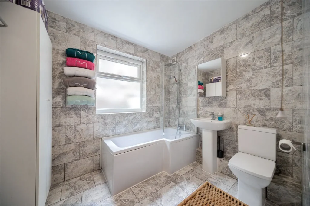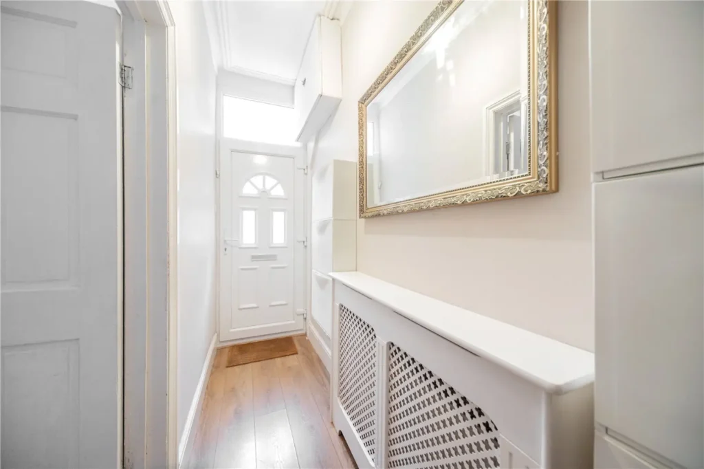 At the rear, the garden, which is accessed from the second reception room, extends to more than 28 ft, offering space for al fresco dining, children’s play, or a quiet retreat.
