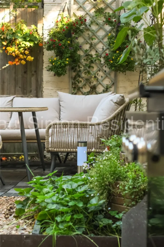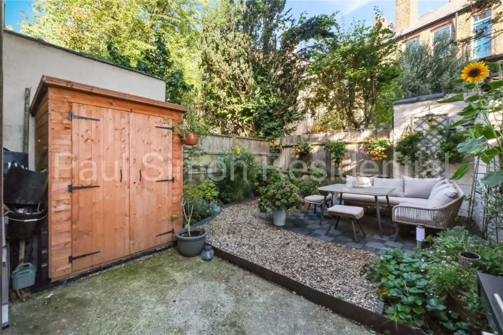 The garden itself is a highlight: tranquil and well-proportioned, perfect for al fresco dining, relaxing, or even creating a small urban oasis with planting and greenery.