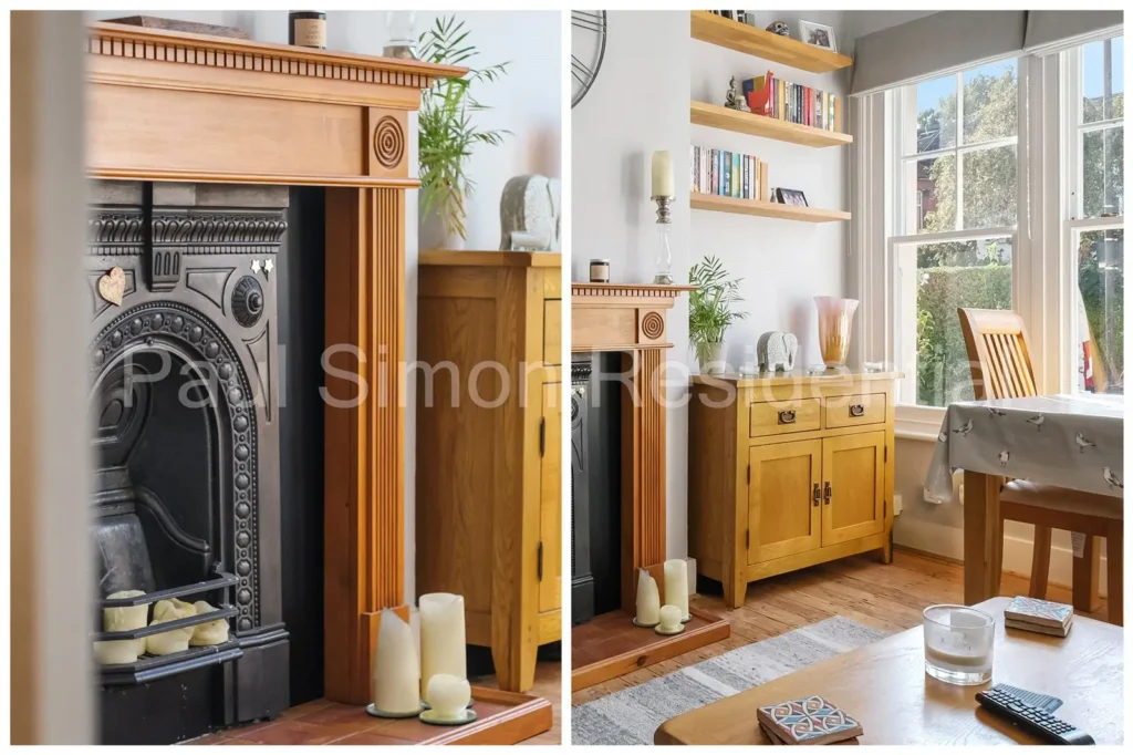 Exposed wooden flooring, double-glazed sash bay windows and fire place.Kitchen