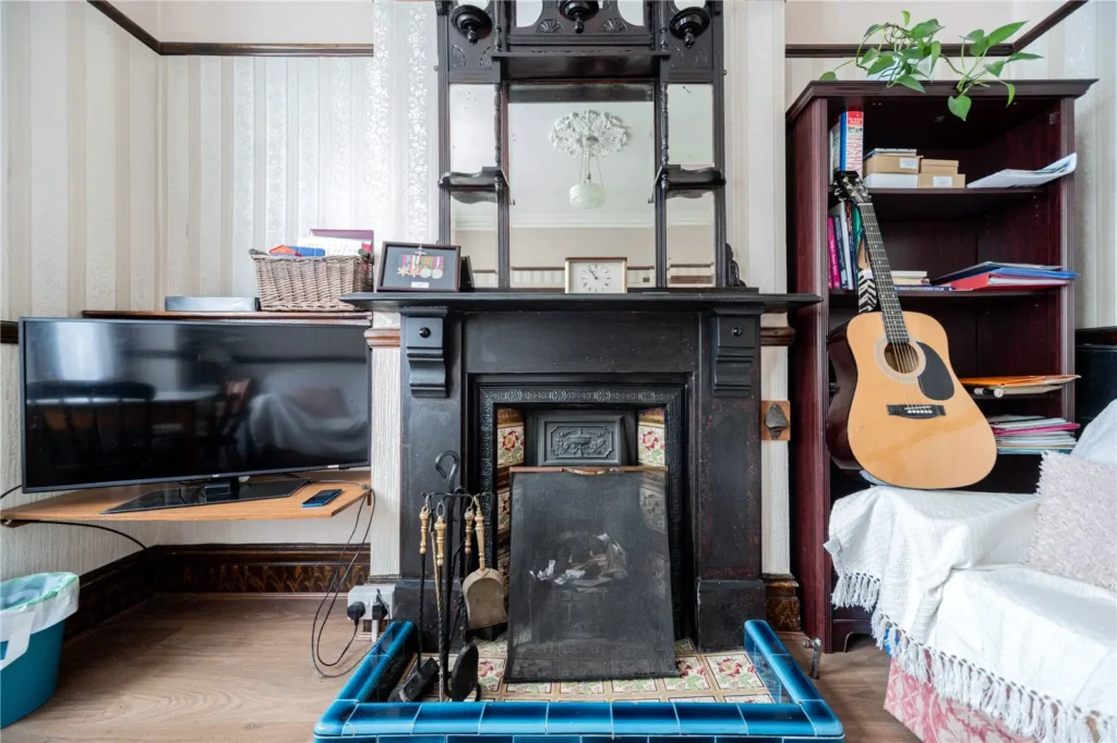 Wooden flooring, sash windows, fire place and single radiatorSecond Reception Room