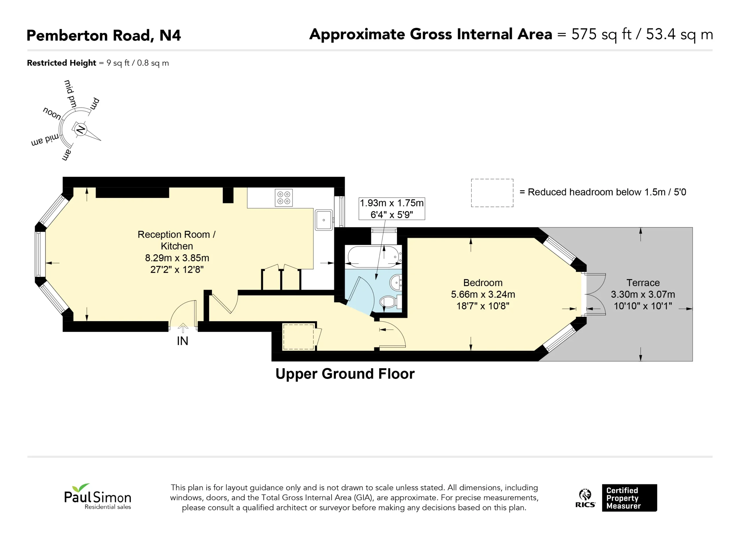 Internally the property features high ceilings with a 27ft bright and airy modern reception/Kitchen diner with double glazed sash windows, one double bedroom, modern fitted kitchen and contemporary bathroom. Furthermore this property benefits from a Share of Freehold.