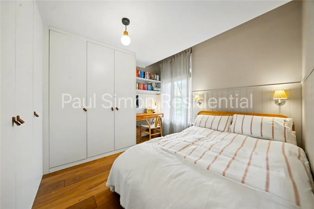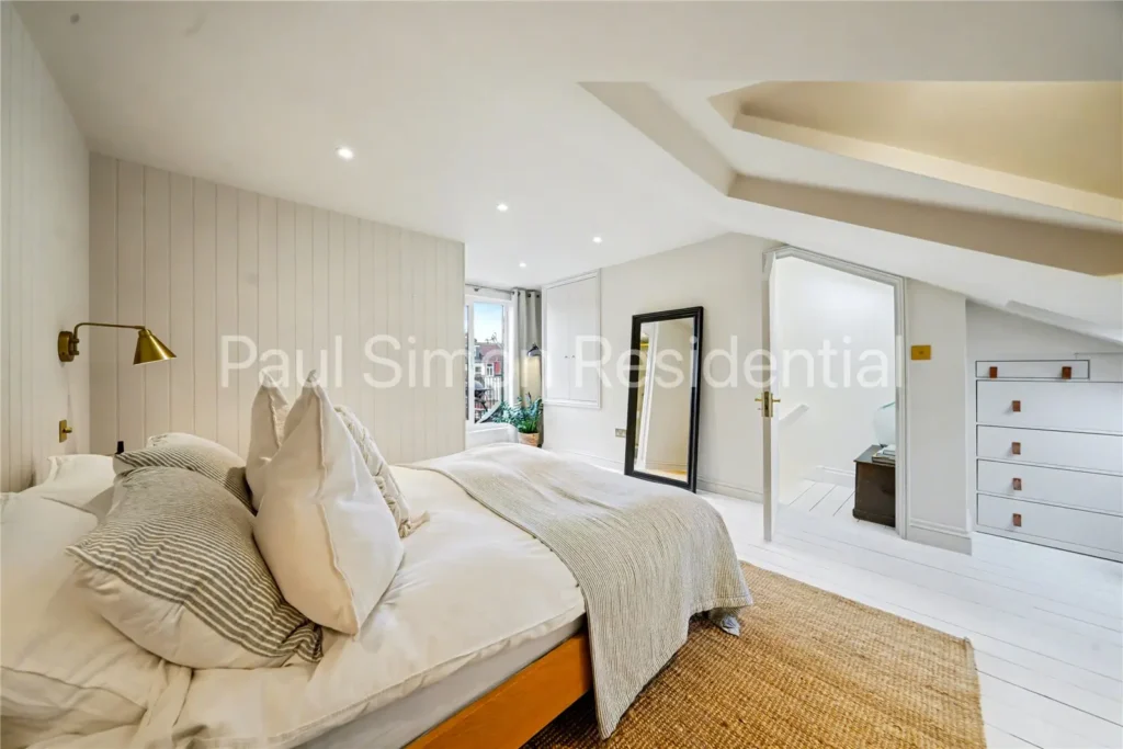 Spanning over 1,072 sq. ft (99 sq. m), the property offers generous proportions and a superb layout ideal for modern living. Accommodation includes two spacious double bedrooms, with the principal suite featuring an interior designed and newly fitted en-suite shower room and direct access to the private roof terrace – perfect for a morning coffee while enjoying panoramic views across London’s skyline.